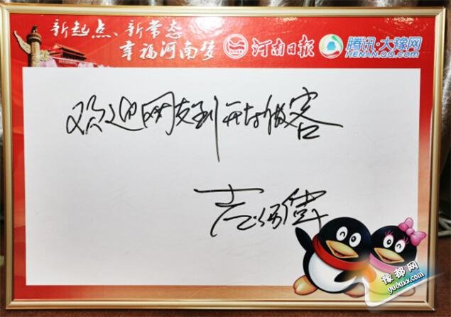 吉炳伟留言:欢迎网友到开封做客(摄影:崔光华)