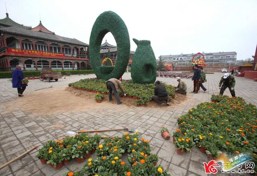 3月26日,中国翰园内工人正在布置花卉造型景观。清明文化节临近,我市公园景点工人们开始摆花布景,营造浓郁的节日气氛,准备迎接八方宾朋。 开封网记者 李俊生摄