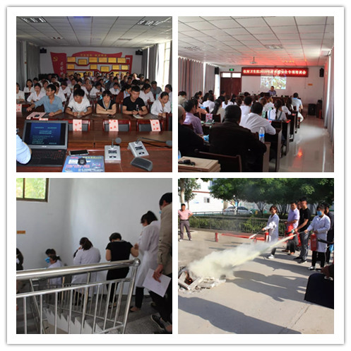 一是邀请河南省安居防火宣传中心王胜达教官对全体干部职工进行消防安全知识培训,通过近期国内外发生的典型火灾事故,给大家再一次敲响了安全防火的警钟;二是开展应急疏散逃生演练、进一步增强医院职工应对火灾逃生的能力;三是开展灭火器实际操作演练,使医院职工切实掌握了如何正确使用灭火器的知识技能;四是利用宣传横幅、LED显示屏、宣传栏、宣传展板、微信等方式全方位、多渠道宣传安全生产和消防安全知识,强化医院职工安全生产意识;五是加大对门急诊、配电房、药房、食堂等重点部位的安全隐患排查整治力度,尤其要加大对电气、消防设施、紧急疏散通道的检查频次和力度,对发现的安全隐患及时整改完毕。