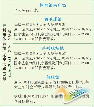 《开封免费、低收费开放大型公共体育场馆 助力全民健身运动再掀新高潮 让市民享受更多健身福利》由河南新闻网-豫都网提供,转载请注明出处:http://kaifeng.yuduxx.com/minsheng/143316.html,谢谢合作!
