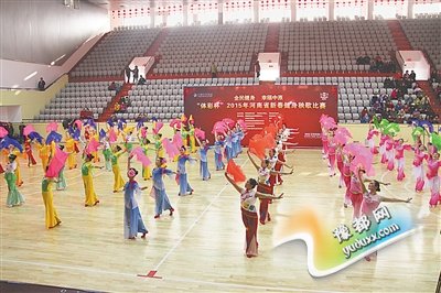 2015年河南省新春健身秧歌比赛现场。 市体育局供图
