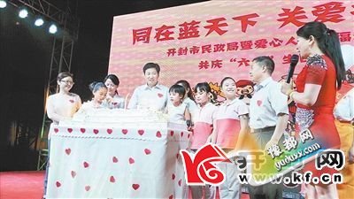 有这样一群孩子,他们是不幸的,刚出生就由于种种原因而被遗弃;他们又是幸运的,被社会福利机构收养并能够在社会的大家庭中快乐成长。他们,就是生活在我市社会福利机构中的福利儿童。由于不能确定其中大多数孩子的确切出生日期,所以每年“六一”节前夕,市民政部门会为他们集体“过生日”。为了让孩子们过一个快乐的“六一”节,5月29日晚,市民政局在“六一”前夕为市社会福利院、市残疾儿童康复中心、中国开封SOS儿童村的近500名福利儿童举行了“同在蓝天下 关爱共成长”庆“六一”生日晚会。在市社会福利园区救灾仓库临时搭建的晚会现场,市民政系统工作人员和社会各界的爱心人士,用爱心点亮了孩子们的梦想,让孩子们畅享欢乐的美好时光……