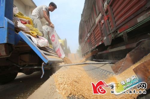 6月14日,在我市北郊一粮食储备库,来自周边的农民纷纷前来卖粮。记者 李俊生 摄