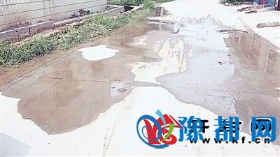 流到路上的热水。 全媒体记者 魏海洋 摄