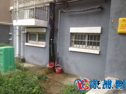 8月23日上午,记者赶到仁和苑小区查看。只见该小区4号楼一单元外的一根水管正在往下流水,有居民在漏水的地热水管下方放置了小水桶,但附近地面依然有很多积水。该楼居民赵女士告诉记者,今年年初时,这座单元楼的地热水管被冻裂了,开始漏水,但一直没有人维修。约一个月前,该地热水管漏水问题越来越严重,从原来的滴水变成向墙上喷水。为了减少水资源的浪费,赵女士用塑料布缠住了水管,但根本没用。