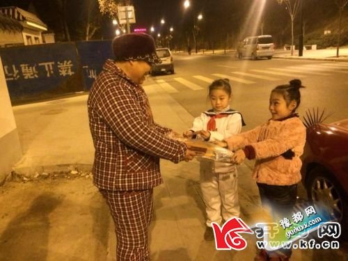 12月30日晚上7时,金明小学西校区晋安小学一年级的田梓心和周恒羽放学后将自己的礼物送到本报报道过的孤儿凡凡的姑姑手中,托她代为转交。