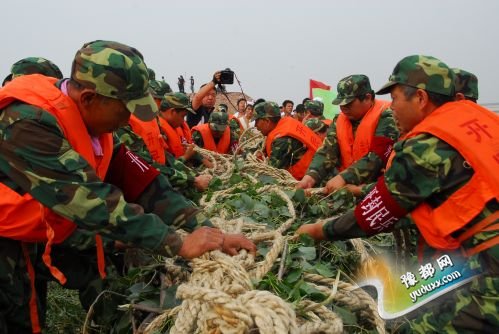 预备役官兵进行黄河防汛演练。