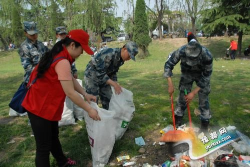 绿色环保行军民携手保护母亲河活动现场。