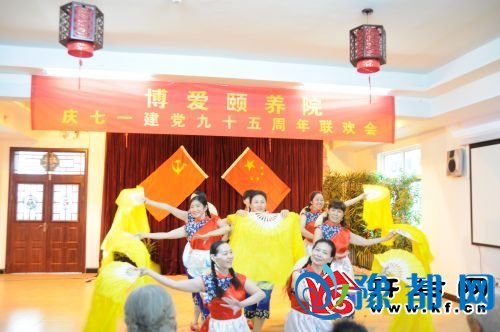 全媒体记者汪元蒙报道 为庆祝建党95周年,6月27日,在我市养老机构入住的老人以自己的方式举办联欢活动。在龙亭区博爱颐养院,记者看到一场别开生面的联欢会正在举办,老人们以自编自导的歌舞迎接“七一”,齐颂党的恩情。
