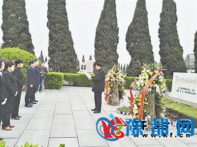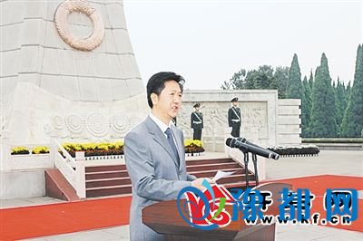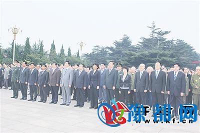当天9时30分,苍松翠柏掩映下的开封市烈士陵园庄严肃穆,烈士纪念碑巍然矗立,纪念碑基座上整齐摆放着黄色菊花,寄托着对革命烈士的无限怀念之情。2000多名各界代表手持鲜花,列队肃立,他们中有烈属、老战士代表,有社会各界干部群众,有风华正茂的青年学生和天真烂漫的少年儿童,有英姿勃发的驻汴部队官兵代表。