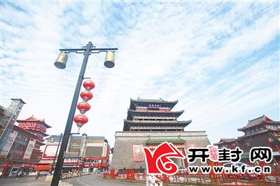 在蓝天白云的映衬下,开封美景如画。 全媒体记者 李俊生 摄